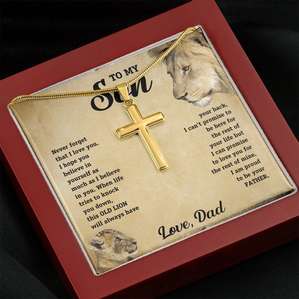 To My Son - Old Lion Artisan Cross Necklace - Meaningful Gift from Dad